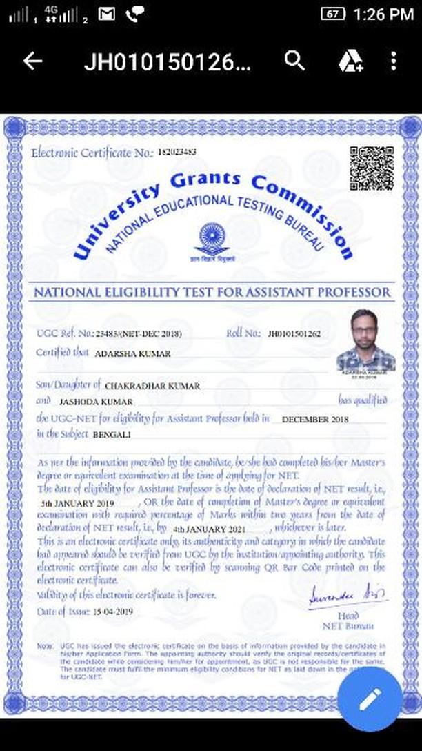 I have the proud privilege to share my views on Jagannath Kishore College, with whom I have been associated for the last twenty-five years initially as a faculty of Physics, and then as the Principal for the last seven years or so. Founded in 1948, and serving as a premiere institution for higher education in Purulia for over seven decades, this college has followed the motto ‘Shraddhavan Lavate Jnanam’( a faithful person achieves knowledge) to its optimum. In Swami Vivekananda’s words ‘Education is the manifestation of perfection already in man’ –.....
